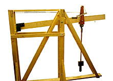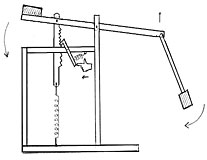 Figure 1. Mechanical hammer with a pendulum The best results were achieved with the lever axel and pendulum at the same height, and the base of the massive lever above the centre of mass, as shown in Figure 1.