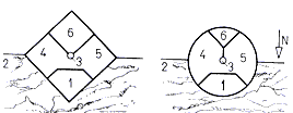 Slika 5. Dva tipa eko-kuća: Bastion i Kristal. 1. ostava, 2. zemljana zaštita, 3. ventilacioni otvor,
