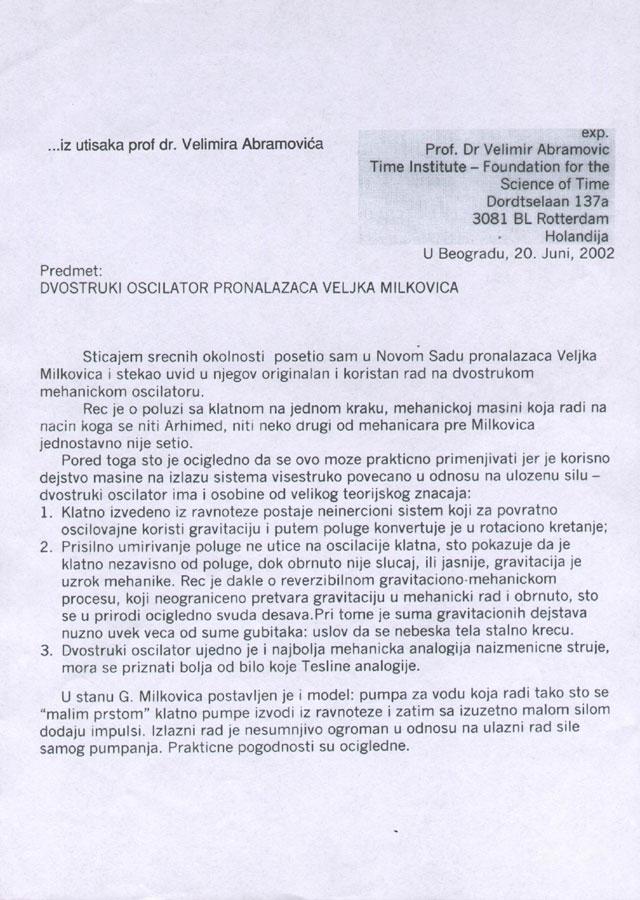 pogledati stručna i naučna mišljenja i analize o pronalascima i istraživanjima koja je Veljko Milković