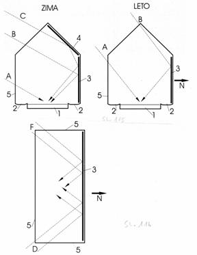 zraka u toku popodneva, 5 - prozirne površine (staklo plastika), 3 - reflektujuća